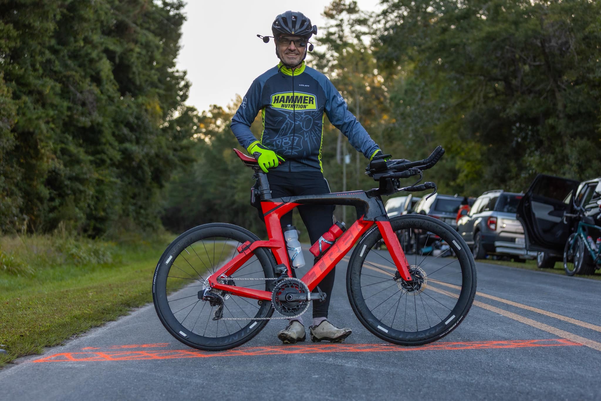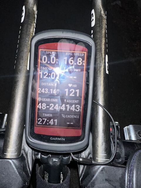 Psycho48 2025 Race report 2 Crazy as is … after the bad signs before the race I was at the start line and last night before the race did not sleep too well but to me that’s almost normal and I just try to focus. Got myself ready and final prepared my main race bike a Trek Speed Concept. Fresh tires due to a flat the day before as well as replacing batteries for shifters. Funny as it was, I first thought of using regular bib pants and one thermos jersey over regular jersey. Temperature at start was chilly and no expectation of a warm day. Also forecast was that wind would pick up during morning time and first night temperature to drop into the 40th F. Last minute I decided to put some long pants on top and drop the warm gloves. Did a few checks on warmup and found that bike and setup was ok. So, race start I did take off a bit faster than I normally do. I knew the competition was tough and that I needed some miles in before wind start picking up. First stops had been planned after 3 laps with plan to switch to every two laps stop for the first 24-30 hours. Was able to manage that very well for the first laps. Had enough nutrition and water with me. First stop I did as plan after 3 laps. Used some simple snacks did drink a bit cola and replaced supplies. Redid my bottle with Hammer Perpetuem for carbs on the road. That part went as planned. Kept an eye open on road where the dog bit me the week before the race. Good thing was that I was able to mostly manage my injuries from the car crash and the dog bite so nothing critical. After first set I noticed the wind picked up a bit stronger and my speed went partial down more than I liked. During the lap 6 I start planning what need to be done on the next stop. It was a longer stop (bathroom break, light changes, batteries for helmet and for my phone). Also used time to make a hot soup. Tough part and a bit unexpected (were foolish) the soup was way too hot so I could not eat/drink much of it). I think I was not efficient on that stop and lost easy about 30-45 minutes. Decided to only do 2 laps before next stop. Into first night I tried to use lights carefully. I still was dressed in long pants, and thermos jersey on top of a regular jersey and long sleeves under those. Overall, that went ok but temperature dropped quick and my hands start getting stiff. Headlight batteries could last up to 6 hours in the brightness I used to see decent enough. Means after latest 3 laps they must get swapped out. So, I stopped after lap 8 and wanted to swap lights, finish last of the soup (now cold) and … fingers stiff would not allow me to get the head lights off the bike and therefore not able to put new once on. Sadly, as is … any support person would have been heaven, but I was by myself. So had to start warming up and get fingers usable again. It took longer than expected. Swapped lights, put the thick gloves back on and back on the road. Kept going that way for first night. My adjusted target remained at about 600 miles in the 48 hours. A little mishap during first night -> Had to stop during the lap and check something out on my taillights. Unfortunate when trying to get off the bike I lost balance and fell. Nothing critical - only bruised up my skin on right knee and hip but not very helpful in middle of a race neither. Those things can easily happen and not having support means you need to figure how to get around every little mishap or unexpected challenge. To me a cool learning experience since all 2025 I use no support. Yes it has some downsides to it but the benefit is that I know I reach the goals with no help and learn to find work arounds on regular basis which is not only cool in cycling … it helps in daily life as well.